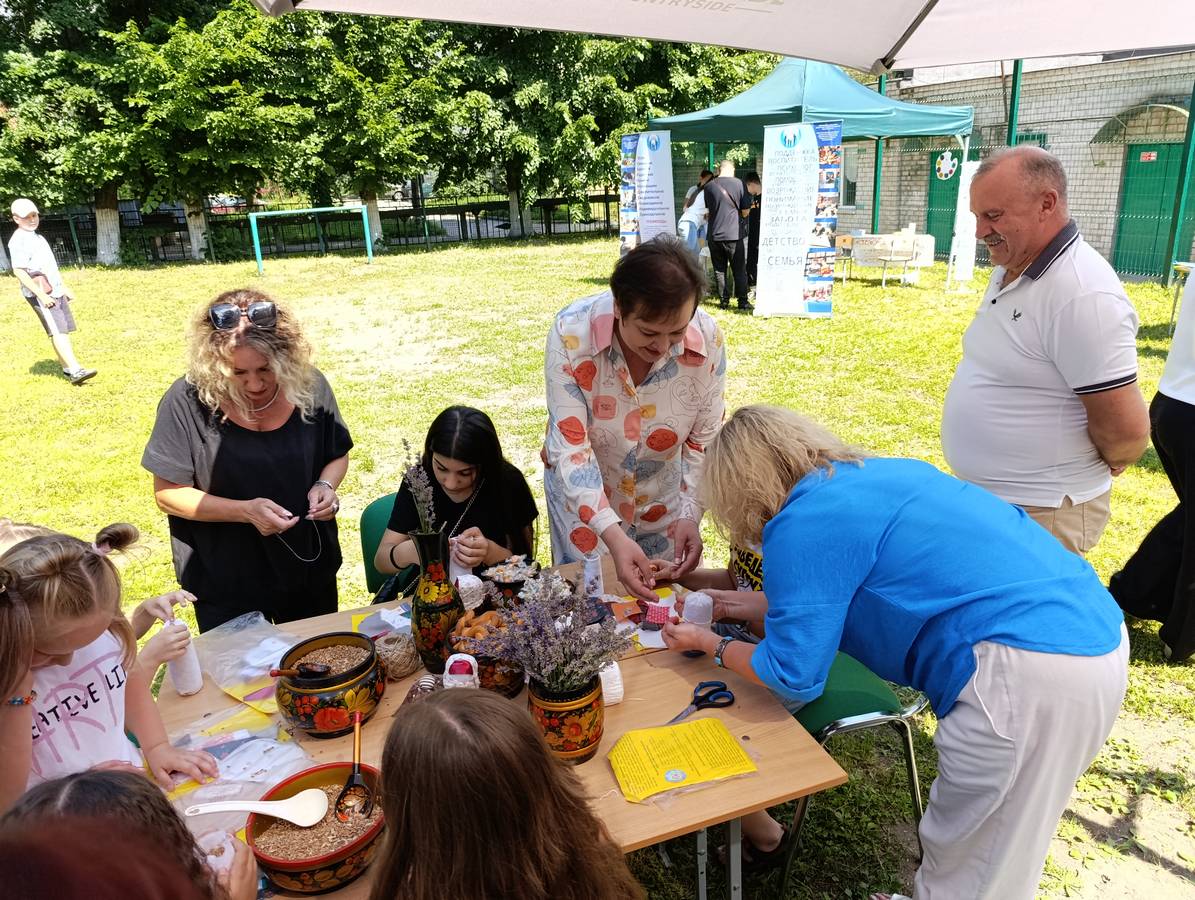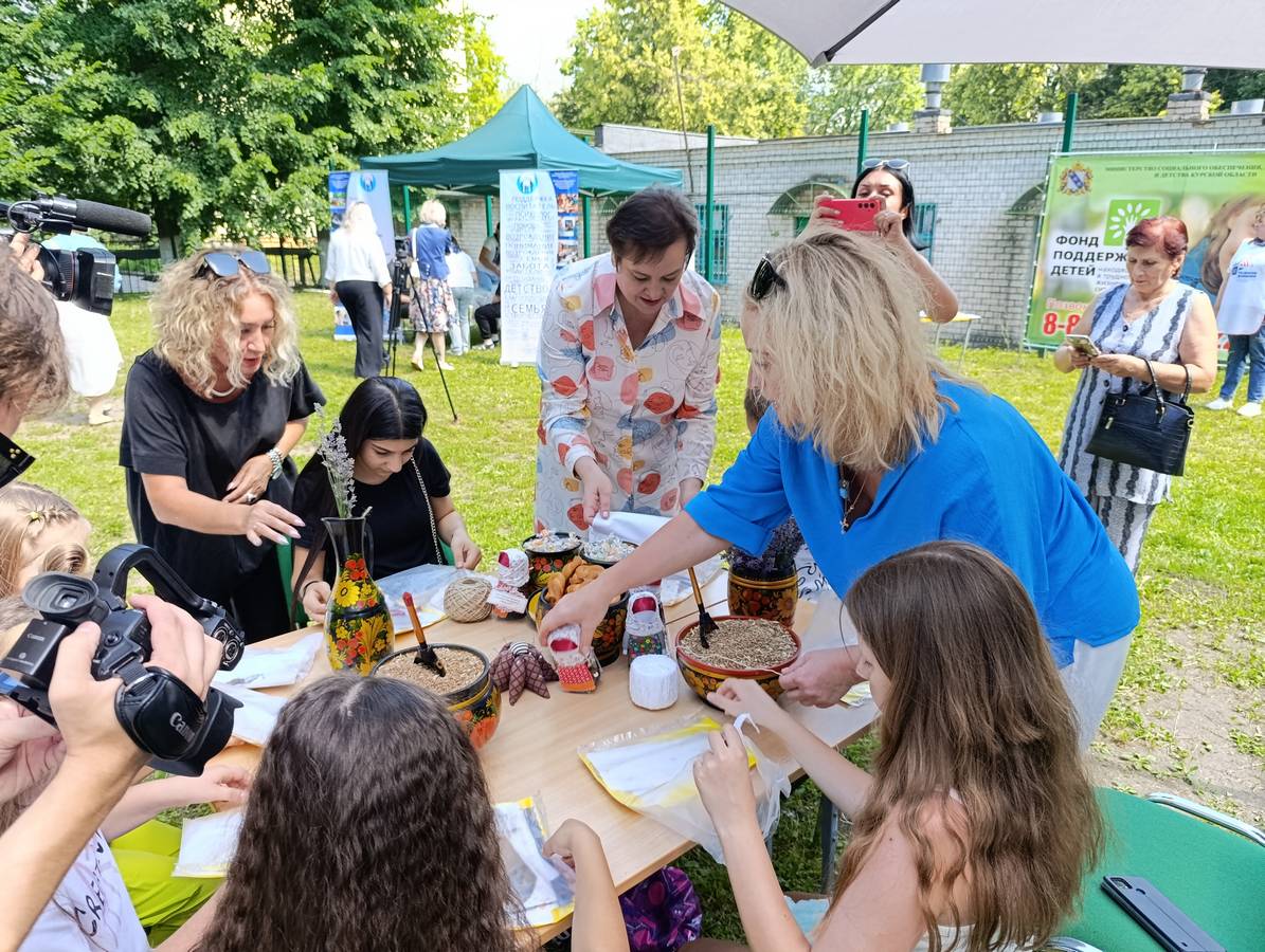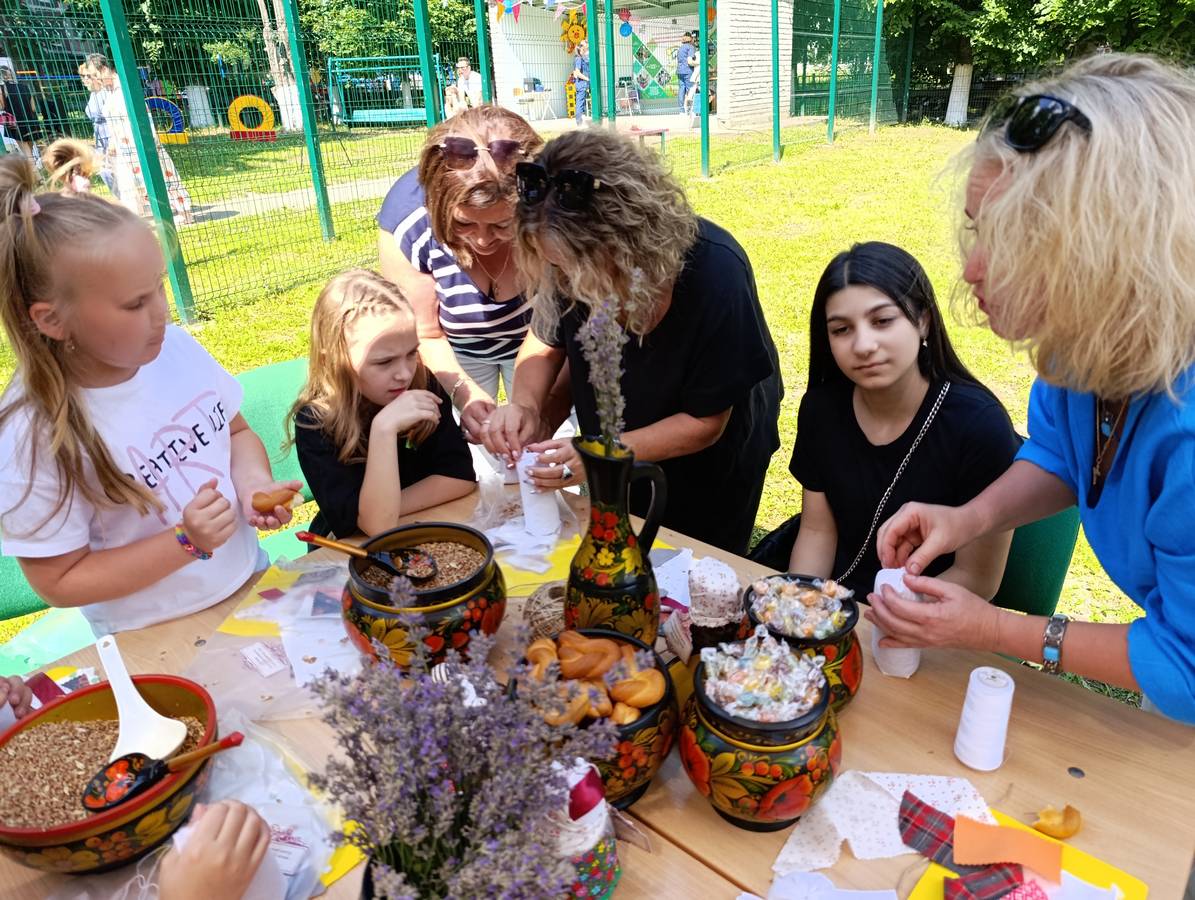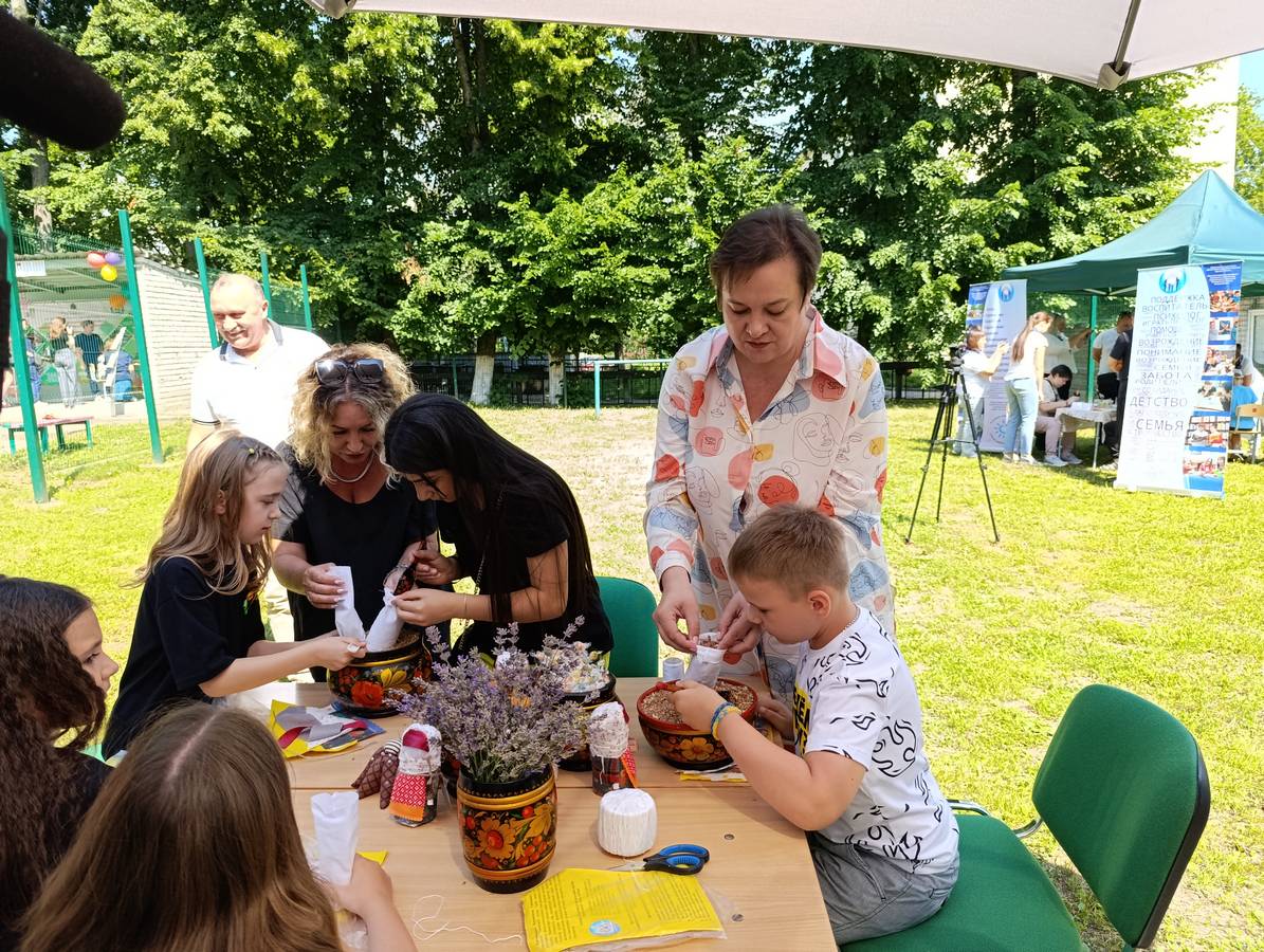 В рамках мероприятия специалисты Центра провели мастер-класс по созданию куклы «Зерновушки» в традиционном костюме Курской губернии. Этот творческий процесс не только увлек детей, но и позволил каждому создать уникальную куклу, которую можно было забрать домой в качестве подарка. Вторая локация была посвящена теме дружбы. Дети вместе «вырастили» дерево, символизируя единство и поддержку друг друга. Это занятие укрепило как дружеские связи между детьми, так и общую атмосферу доброжелательности на слете.