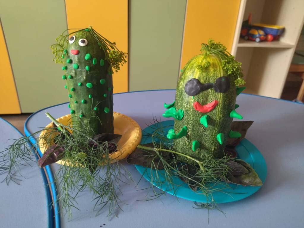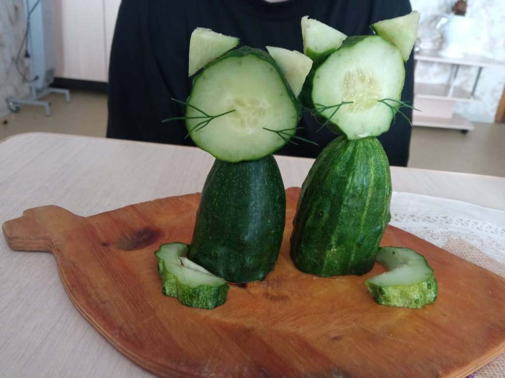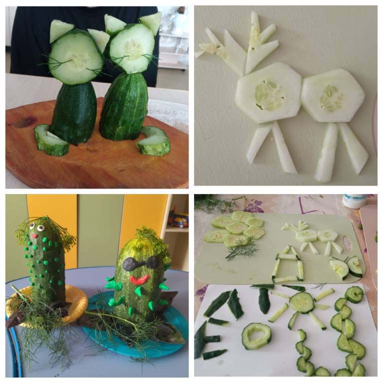 Кроме кулинарии, занятия включали в себя и творческий аспект. Воспитанники создали различные поделки из огурцов, используя их как основной материал для художественного выражения.