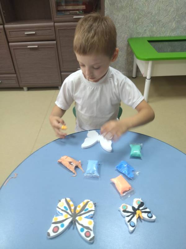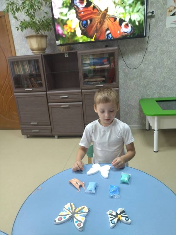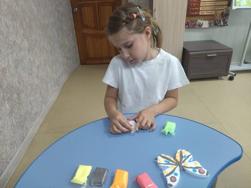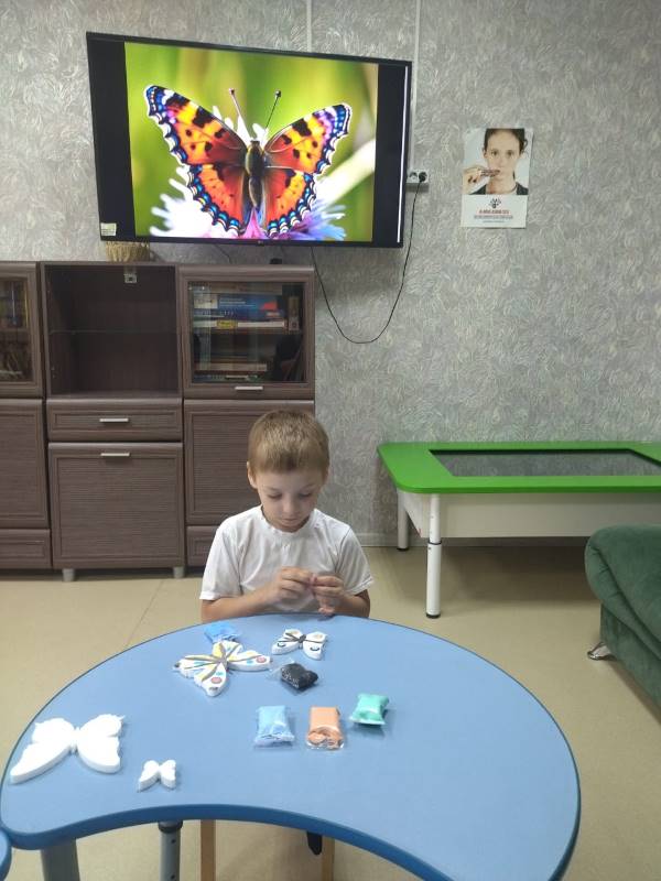 У воспитанников стационарного отделения — социальный приют для детей и подростков ОКУ «Щигровский центр социальной помощи семье и детям «Импульс» прошло творческое занятие, на котором дети изготовили "Чудесную бабочку" с использованием пенопласта и воздушного пластилина.