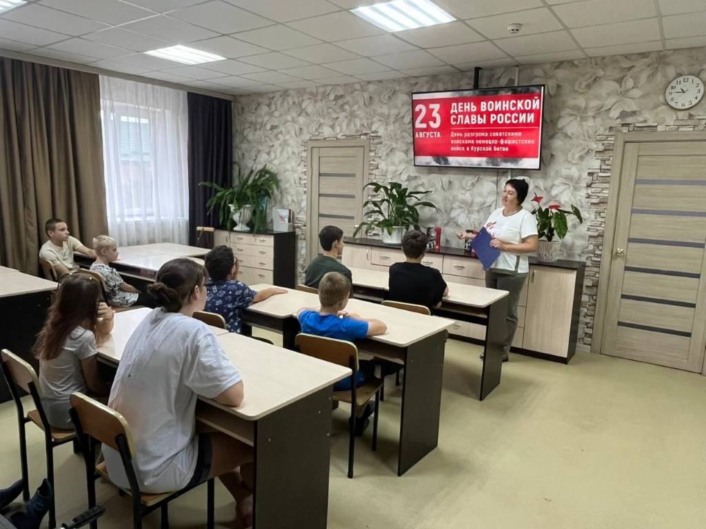 У воспитанников стационарного отделения — социального приюта для детей и подростков ОКУ «Щигровский центр социальной помощи семье и детям «Импульс» прошло занятие "День воинской славы России", посвящённое дню разгрома фашистских войск в Курской области.