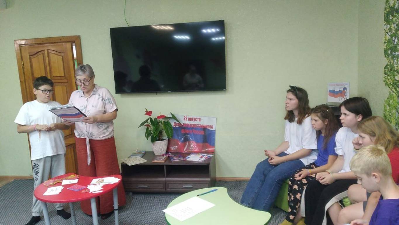 Гостями стационарного отделения — социальный приют для детей и подростков ОКУ «Щигровский центр социальной помощи семье и детям «Импульс» стали специалисты районной библиотеки с конкурсно-игровой программой «Флаг Державы». Визит был приурочен ко Деню российского флага.
