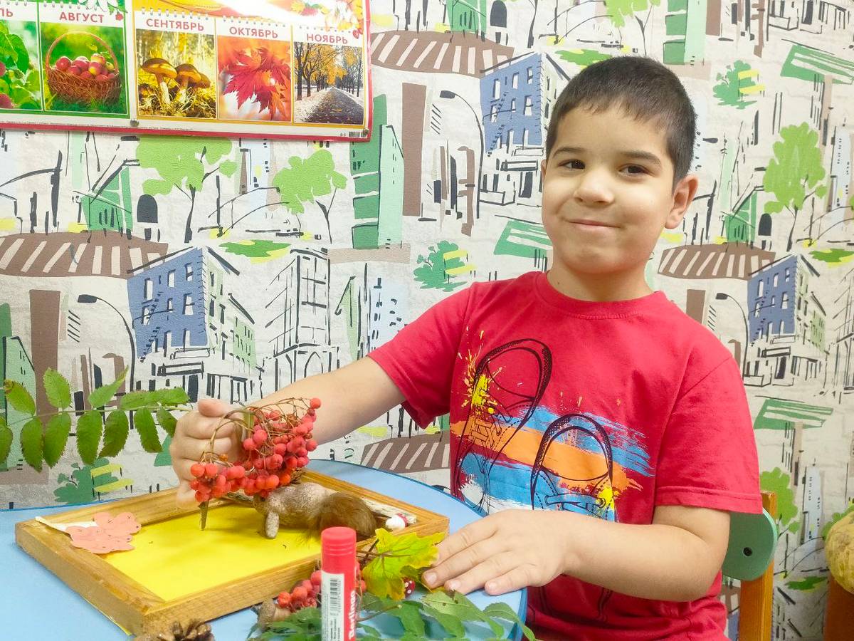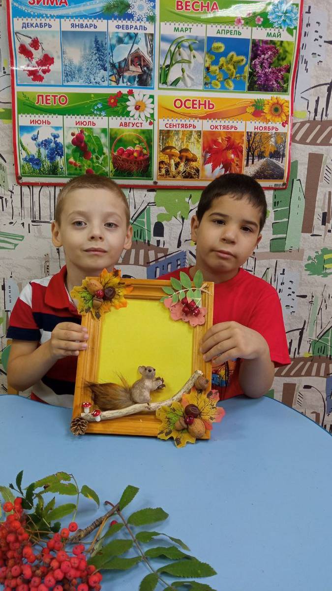 Маленькие мастера младшей группы ОКУ «Щигровский центр социальной помощи семье и детям «Импульс» создали осеннюю белку из даров природы — тепло, творчески и с любовью к окружающему миру!» Объемная композиция получилась яркой и аккуратной.