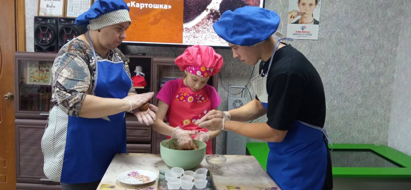 На занятии по домоводству воспитанники стационарного отделения -социальный приют для детей и подростков ОКУ «Щигровский центр социальной помощи «Импульс» учились готовить классическое пирожное «Картошка».