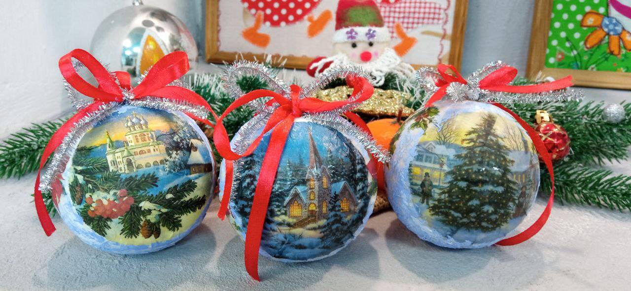 В преддверии Нового года воспитанники Щигровского центра «Импульс» изготовили ёлочные украшения, выполненные в технике «декупаж».