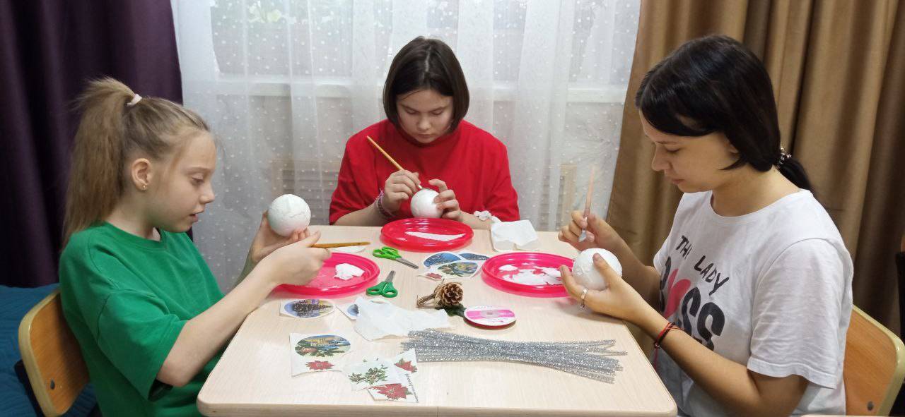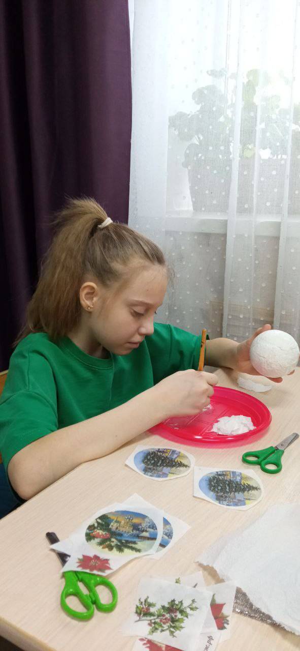 Воспитанники Щигровского центра изготовили ёлочные шары.
