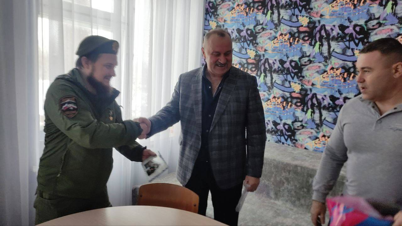 Командир подразделения связи с позывным «Тимсо» передал детям поздравления от Героя России, командира спецназа «Ахмат» генерала-лейтенанта Апти Ароновича Алаудинова и передал в подарок  спортивный инвентарь. 🎁