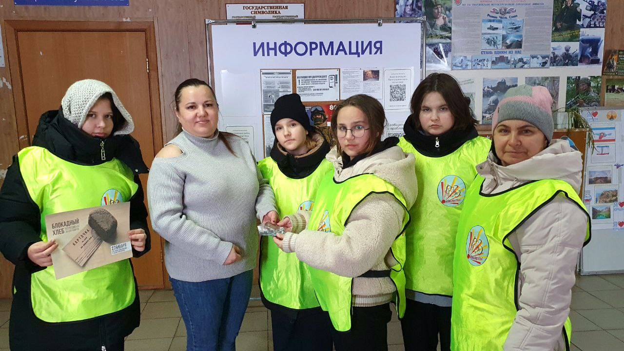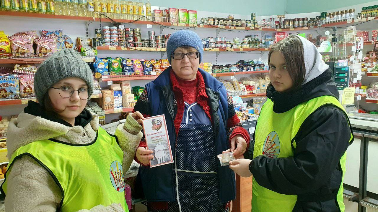 Участники акции раздавали прохожим информационные памятки и буклеты — символ уважения к подвигу ленинградцев. В этих листовках — сухая, но страшная статистика: 872 дня голода, холода и бомбёжек, и те самые 125 граммов ежедневного пайка, ставшие символом жизни и надежды. Ребята напоминали землякам о цене жизни в блокадном городе и о том, как важно передавать эту историю из поколения в поколение.