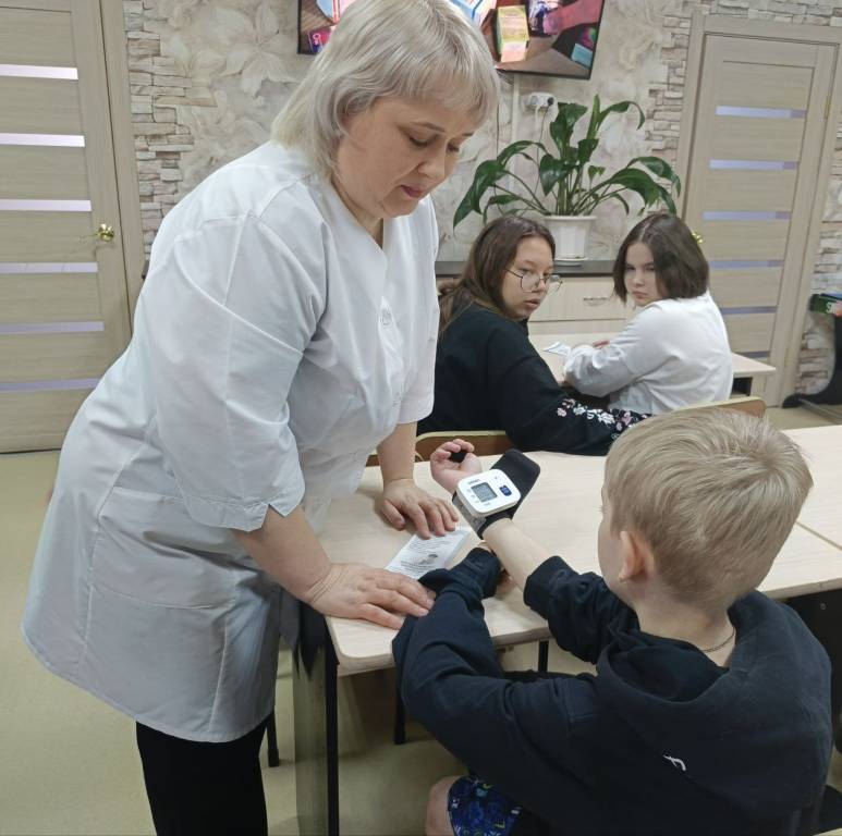 Воспитанники активно участвовали в занятии: учились правильно измерять артериальное давление и температуру тела, осваивали технику обработки ран. Особое внимание уделили малышам, которые весело провели время, играя в познавательную игру «Аптека».