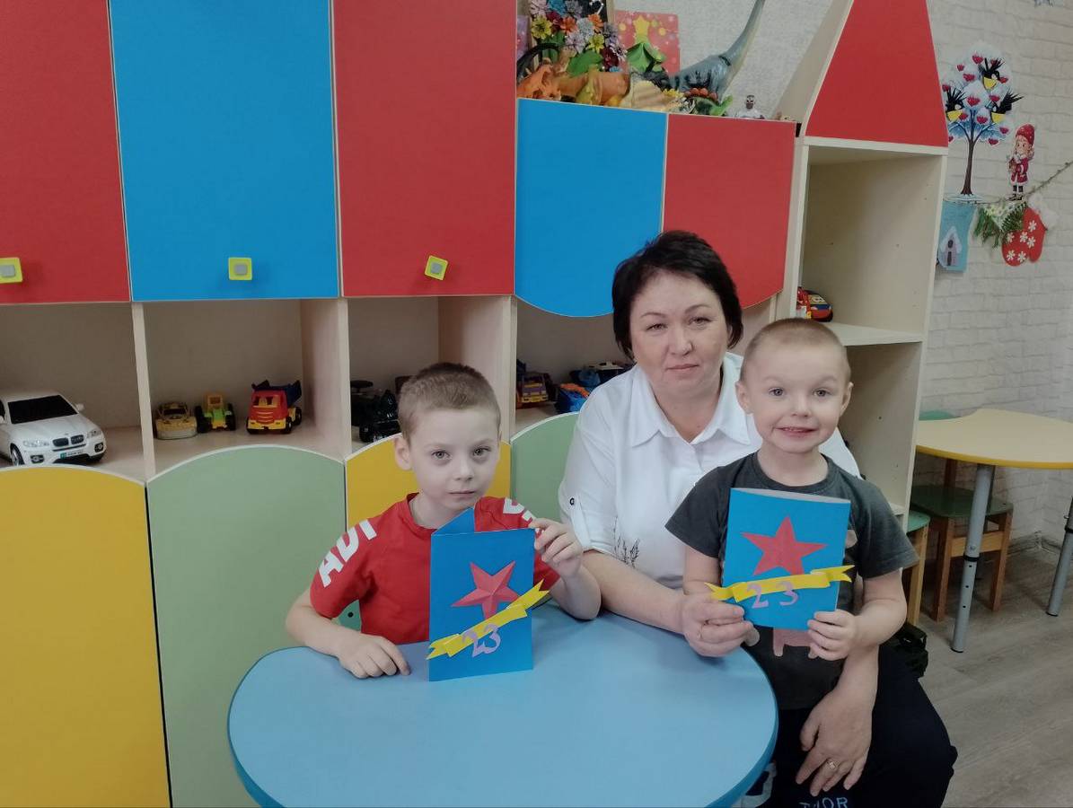Воспитанники младшей группы Щигровского центра подготовили открытки для пап и дедушек