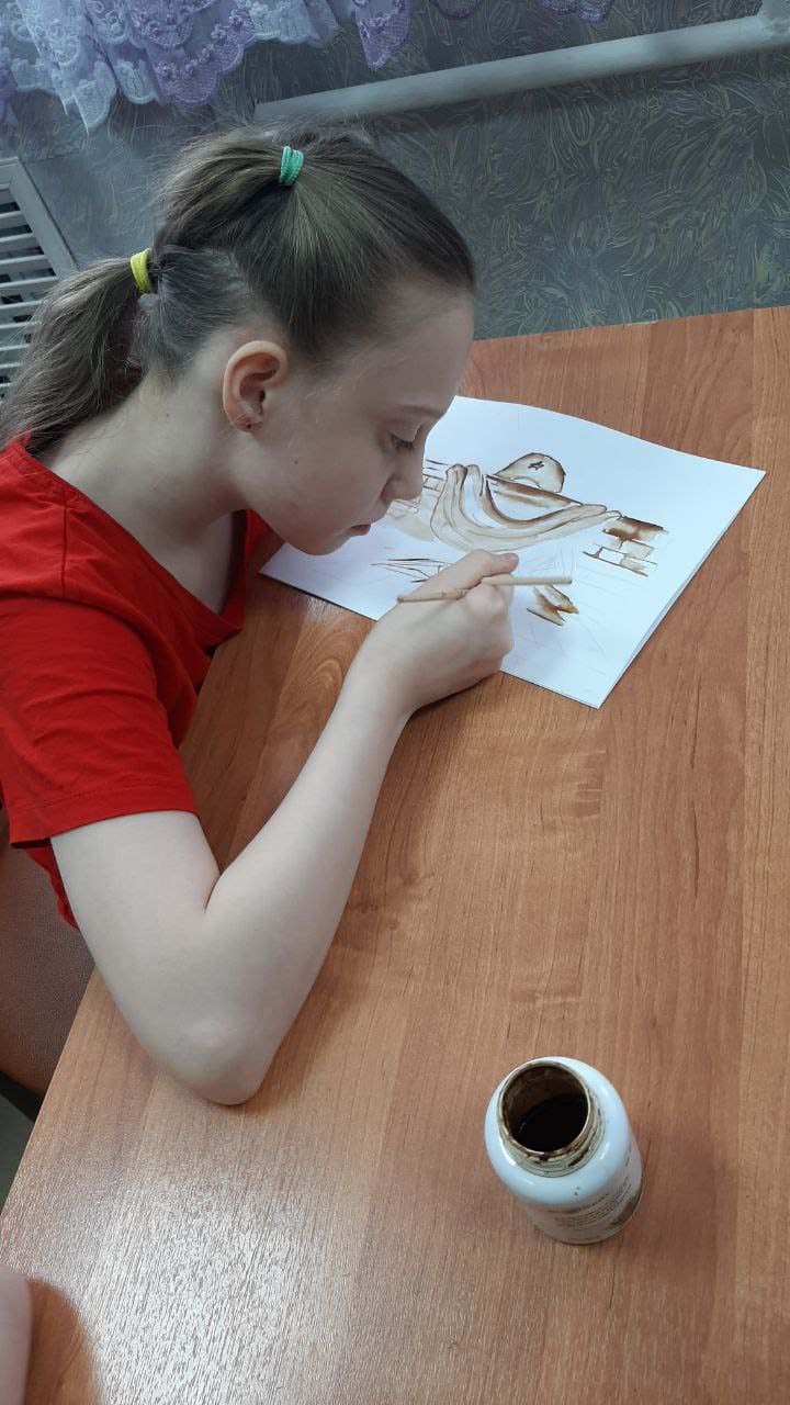 В арт-терапевтическом кабинете в преддверии Дня защитника Отечества состоялось занятие по кофейной живописи. Воспитанники выполнили тематические рисунки. Дети с удовольствием экспериментировали с ароматом и цветом кофе, создавая трогательные и оригинальные рисунки.  Это время вдохновения, творчества и приятного общения!