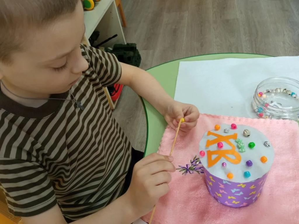Ребята очень старались: аккуратно приклеивали каждую деталь, создавая иллюзию нежной сахарной помадки и разноцветного весеннего декора. Получилось ярко и празднично.