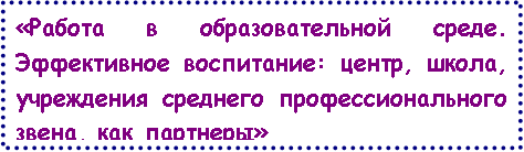 «Работа в образовательной среде. Эффективное воспитание: центр, школа, учреждения среднего профессионального звена, как партнеры»