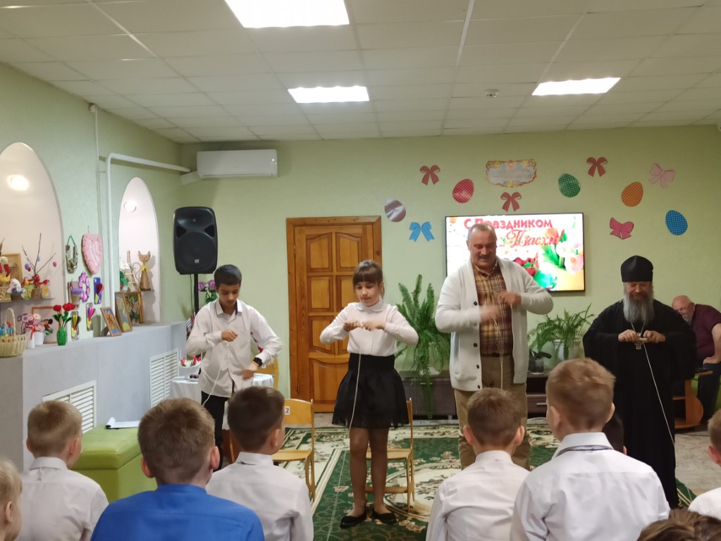 Епископ Щигровский и Льговский Паисий и настоятель храма Покрова Пресвятой Богородицы Иеромонах Николай   поздравили всех со светлым праздником, пожелали света, радости и добра. Дети смогли понять значение праздника и Пасхальную радость.  В завершении мероприятий воспитанники и священнослужители обменялись подарками.
