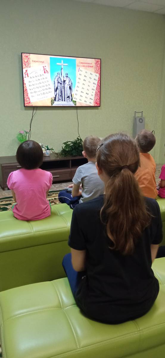 В рамках цикла мероприятий по духовно-нравственному воспитанию продолжаем знакомить воспитанников стационарного отделения-социальный приют для детей и подростков ОКУ «Щигровский центр социальной помощи семье и детям «Импульс» с историей нашей Родины.  Воспитатель Центра Смахтина Татьяна Геннадьевна познакомила   детей с возникновением славянской письменности, видоизменениями, которые произошли   в алфавите со времен его создания, а также рассказала о выпуске первой книги на Руси. Подростки попробовали написать буквы первой азбуки, поговорили о любимых книгах и писателях.