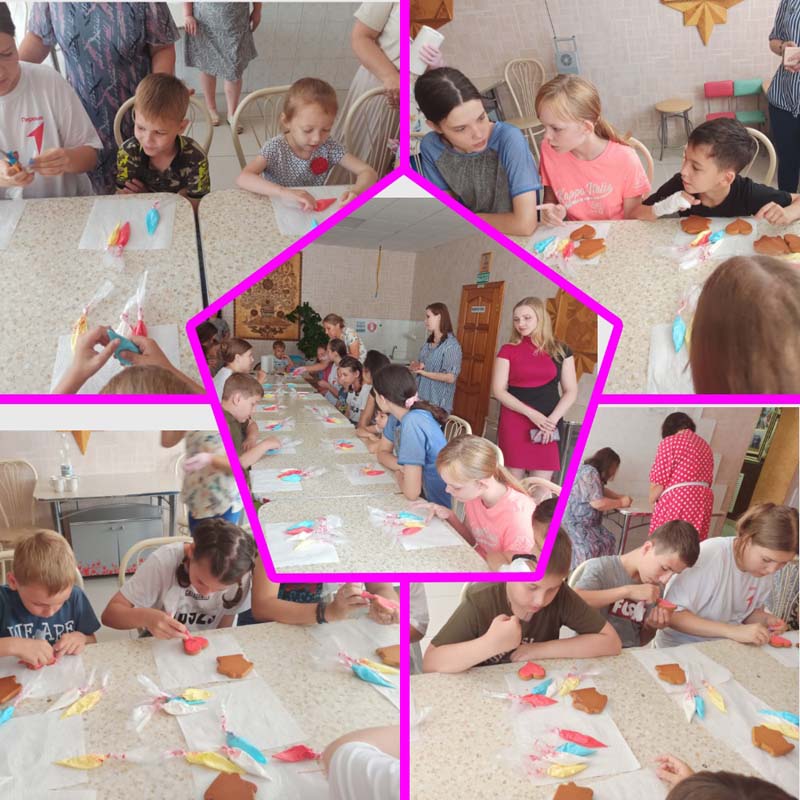 Сегодня в гости к воспитанникам стационарного отделения-социальный приют для детей и подростков ОКУ «Щигровский центр соцпомощи «Импульс» приехали члены движения детей и молодежи «Движение Первых» (г.Щигры и Щигровского района) вместе с   руководителем Тишиной Мариной Ивановной, специалистом Надеиной Ириной Владимировной и многодетной семьей Савинкиных, которые увлекаются изготовлением и росписью имбирных пряников. Воспитанники Центра совместно с командой РДДМ «Движение Первых» приняли участие в мастер-классе «Роспись имбирных пряников», представленного Романом Савинкиным. Дети расписывали пряники в виде сердечек и домиков. Этот увлекательный и творческий процесс захватил всех ребят без исключения. В завершении мероприятия воспитанники приняли участие в совместной игре и получили сладкие подарки.