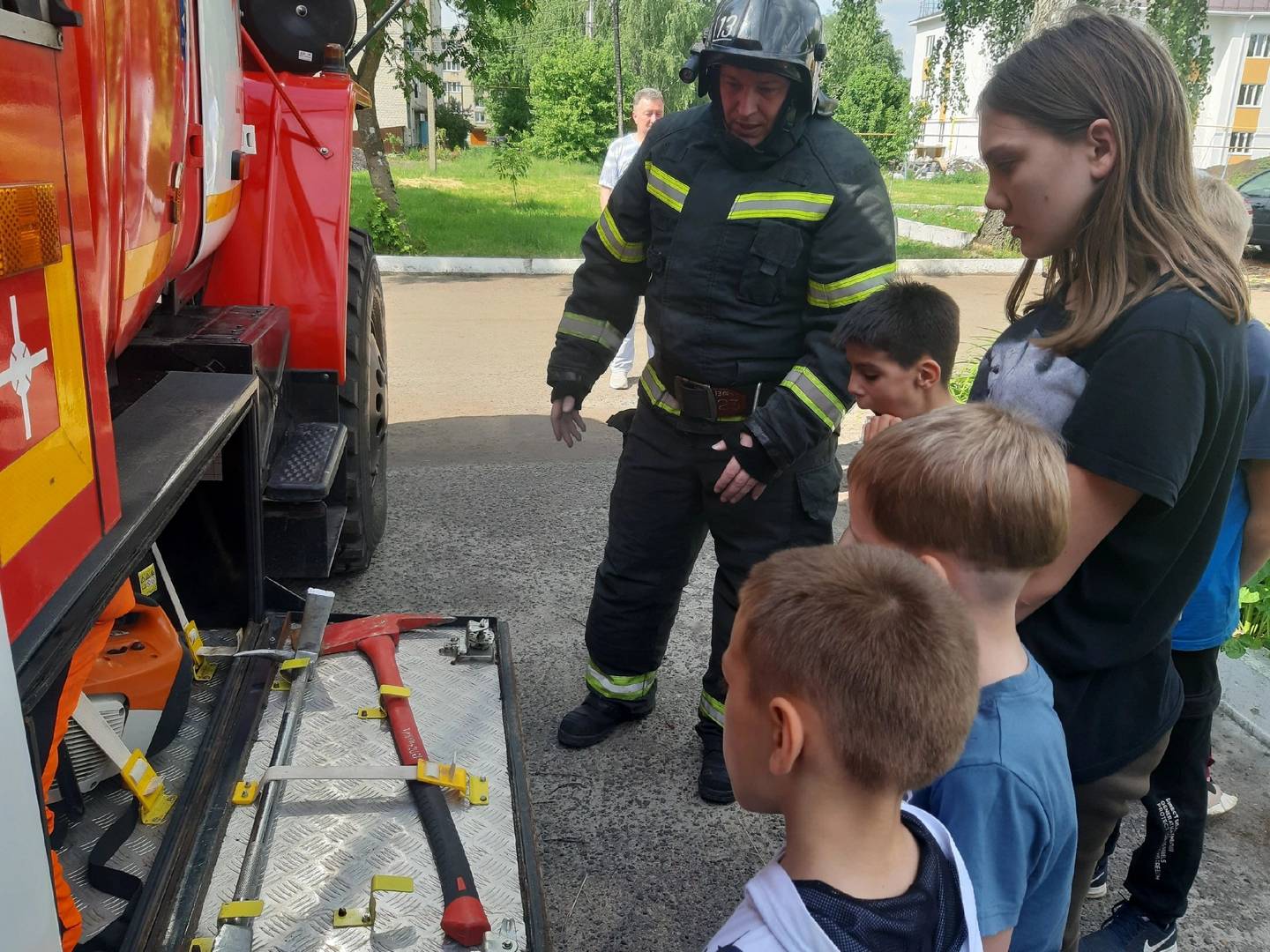 Воспитанники стационарного отделения-социальный приют для детей и подростков ОКУ «Щигровский центр социальной помощи «Импульс» побывали в гостях пожарно-спасательной части. Детям рассказали о важности   профессии пожарного, напомнили об основных правилах безопасного поведения в быту.  Ребята осмотрели территорию подразделения, технику и снаряжение, познакомились с несением караульной службы. С большим интересом девчонки и мальчишки рассматривали пожарные машины, спасательное оборудование. Пожарные продемонстрировали, как быстро и правильно надеть боевую одежду, после чего ребята примерили костюм пожарного.
