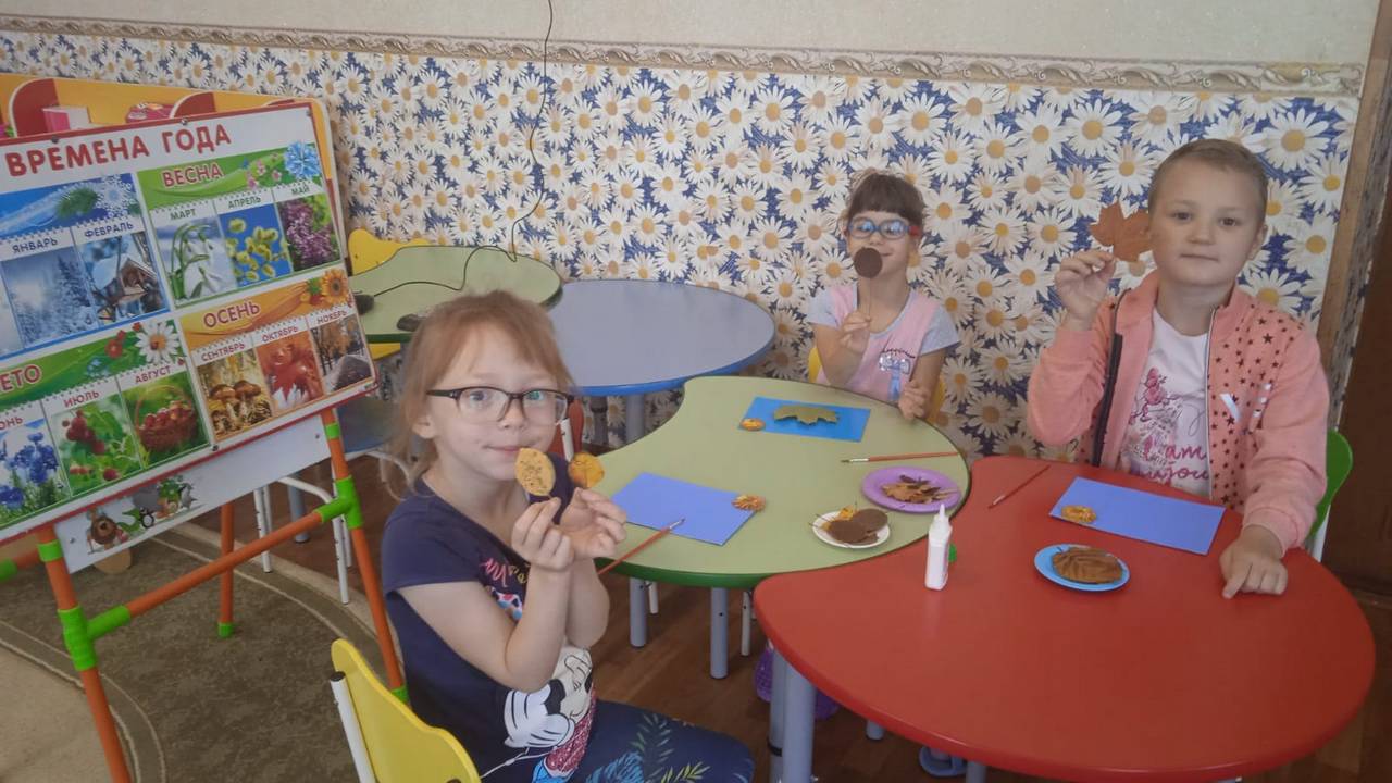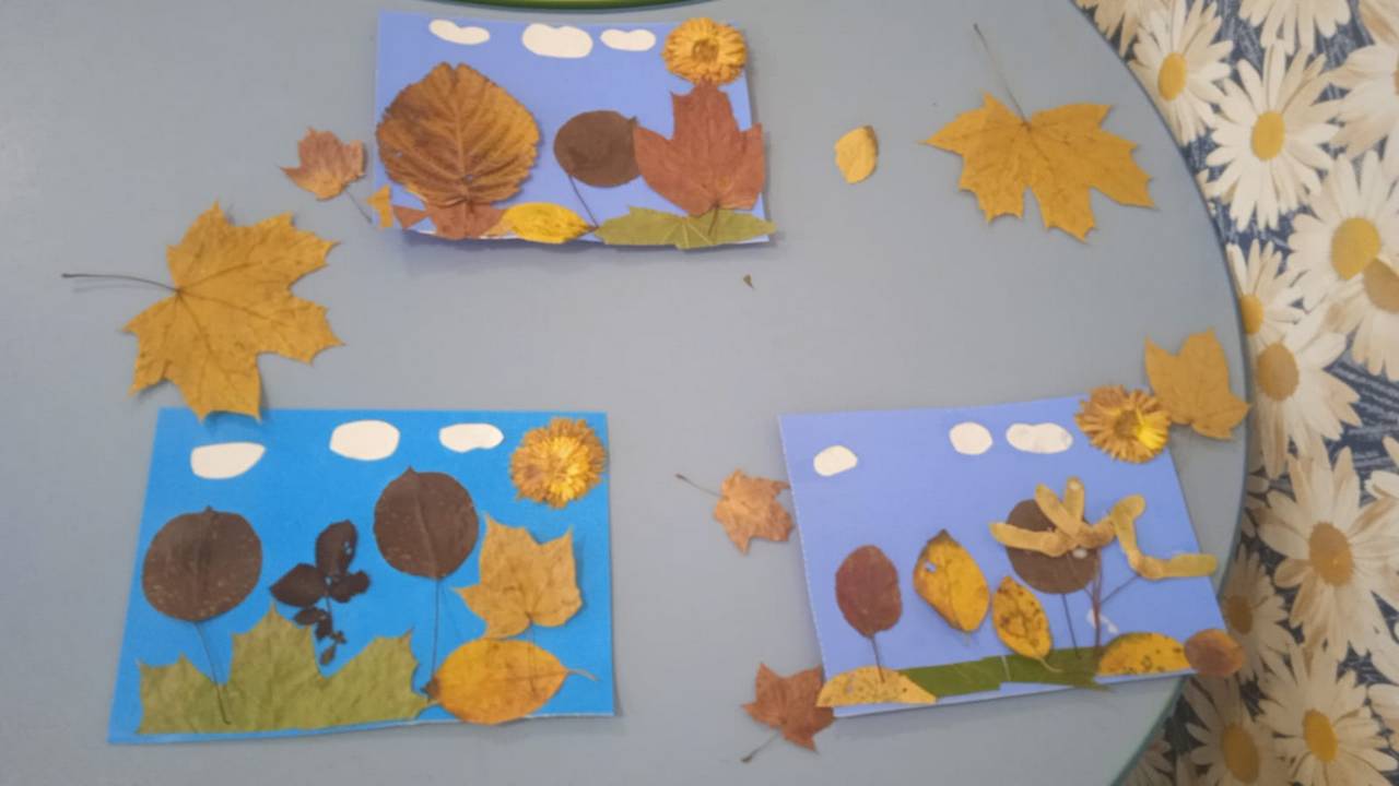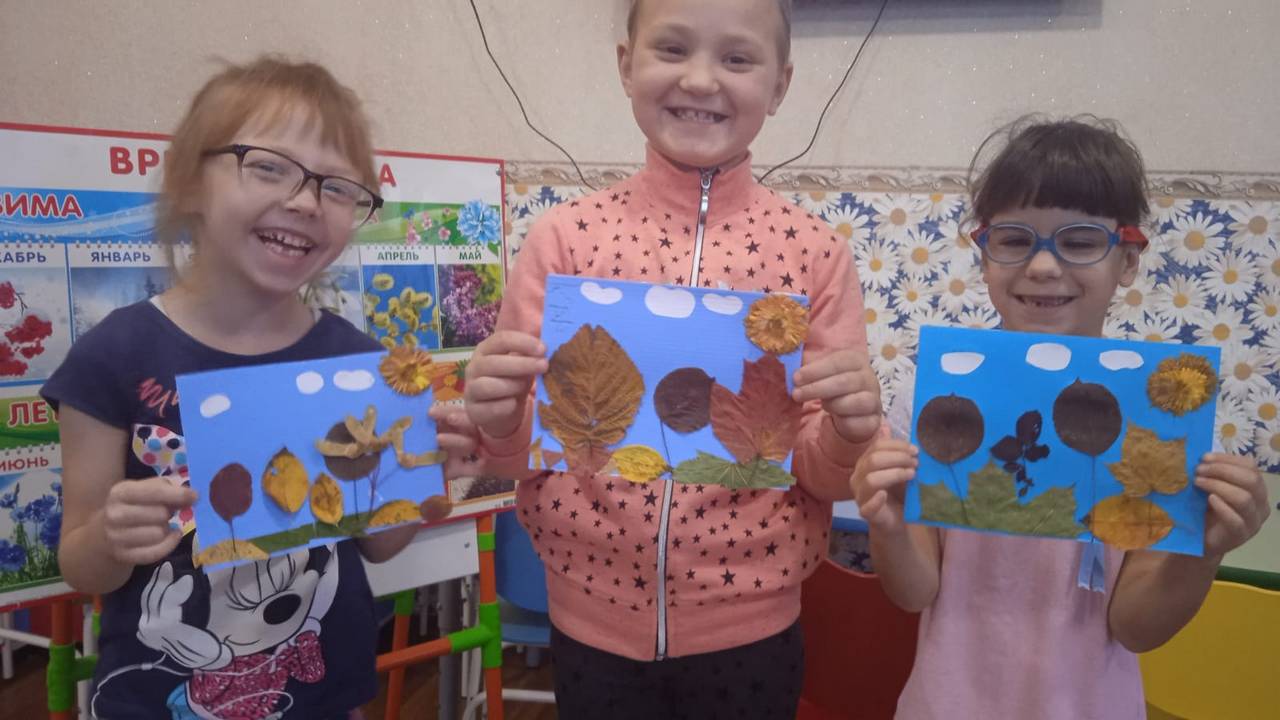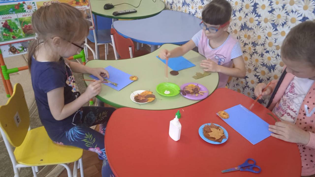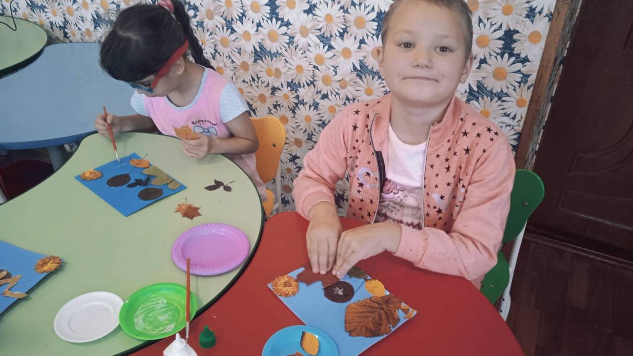 Сегодня в младшей группе стационарного отделения-социальный приют для детей и подростков ОКУ «Щигровский центр социальной помощи семье и детям «Импульс» воспитанники под руководством воспитателей работали с природным материалом. Результат творчества- «Осенний  пейзаж», выполненный при помощи  осенних листьев  на  бумаге.