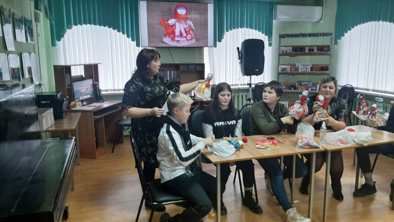 Воспитанники стационарного отделения-социальный приют для  детей  и  подростков ОКУ «Щигровский центр социальной помощи семье и детям «Импульс» приняли участие в  мастер-классе Кукла-оберег Щигровской  межпоселенческой  районной библиотеке. На мастер-классе библиотекарь Еремина Е.В.  рассказала детям об истории создания  кукол-оберегов, с  их  разновидностями и   техникой  их  изготовления. Вместе с  педагогом Крутицкой Л.В.  ребята изготовили  куклу  «Берегиню». С отличным  настроением и  сувенирами дети  завершили  мастер-класс!