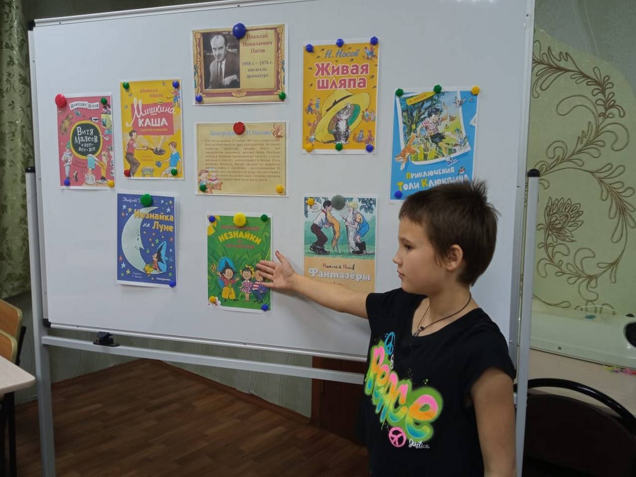 Дети познакомились с творчеством писателя, организовали выставку книг, провели конкурс рисунков по произведениям писатели и приняли участие в увлекательной игре «Бюро находок».