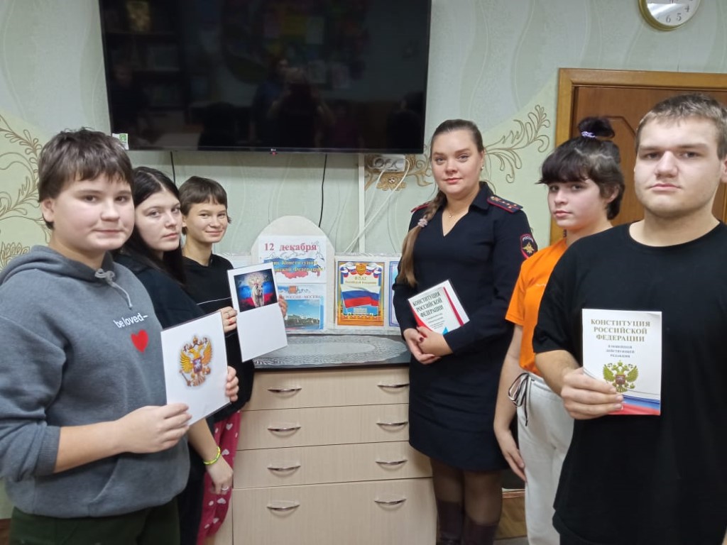 Конституция Российской Федерации — основной закон нашей страны. В преддверии   Дня Конституции в стационарном отделении-социальный приют для детей и подростков ОКУ "Щигровский центр социальной помощи семье и детям "Импульс" прошла беседа с юрисконсультом МО МВД России «Щигровский» Куценко Юлией Юрьевной.