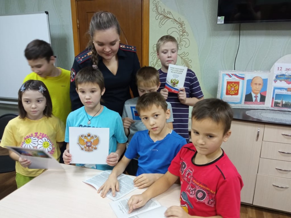 Юлия Юрьевна познакомила с воспитанников с историей создания Конституции РФ, ее структурой и содержанием. В ходе беседы ребята узнали о форме правления в нашей стране, об органах власти, о правах и обязанностях человека и гражданина.