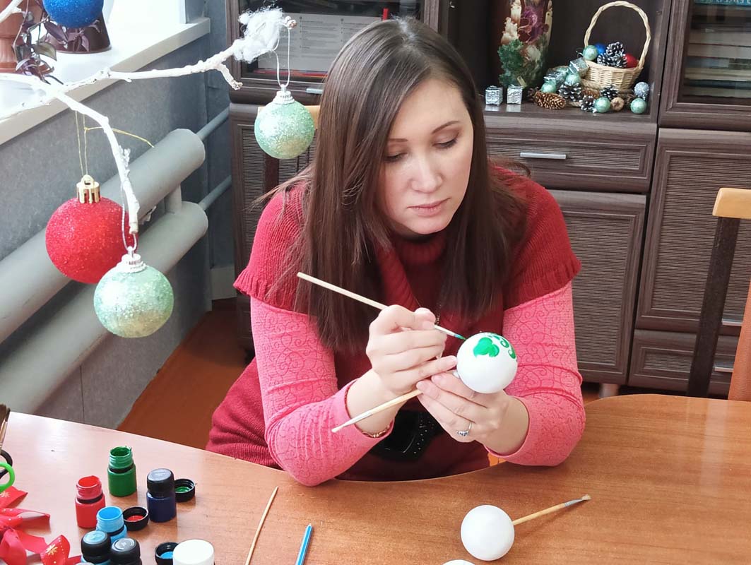 В стационарном отделении- социальный приют для детей и подростков ОКУ «Щигровский центр социальной помощи семье и детям «Импульс» прошел увлекательный и занимательный мастер-класс «Новогодние шары. Воспитанники под руководством социального педагога расписали     новогодние шары, которыми   украсили елку Центра. Все  шары   получились  яркими, красочными  и  зарядили  детей  новогодним настроением!