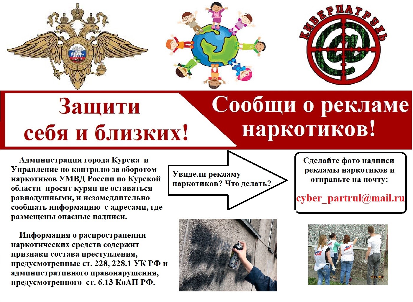Защити себя и близких! Сообщи о рекламе наркотиков!